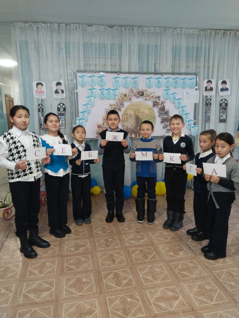 Бастауыш сынып оқушыларымен "Өнегелі 15минут"өтті."Әріптермен жауап бер"ойыны барысында кез келген қойылған сұрақтарға оқушылар қолдарындағы әріптермен жауап берді.Бұл ойын олардың жылдам ойлау,зейн қою және логикалық ойлау қабілеттерін дамытты.Оқушылар...