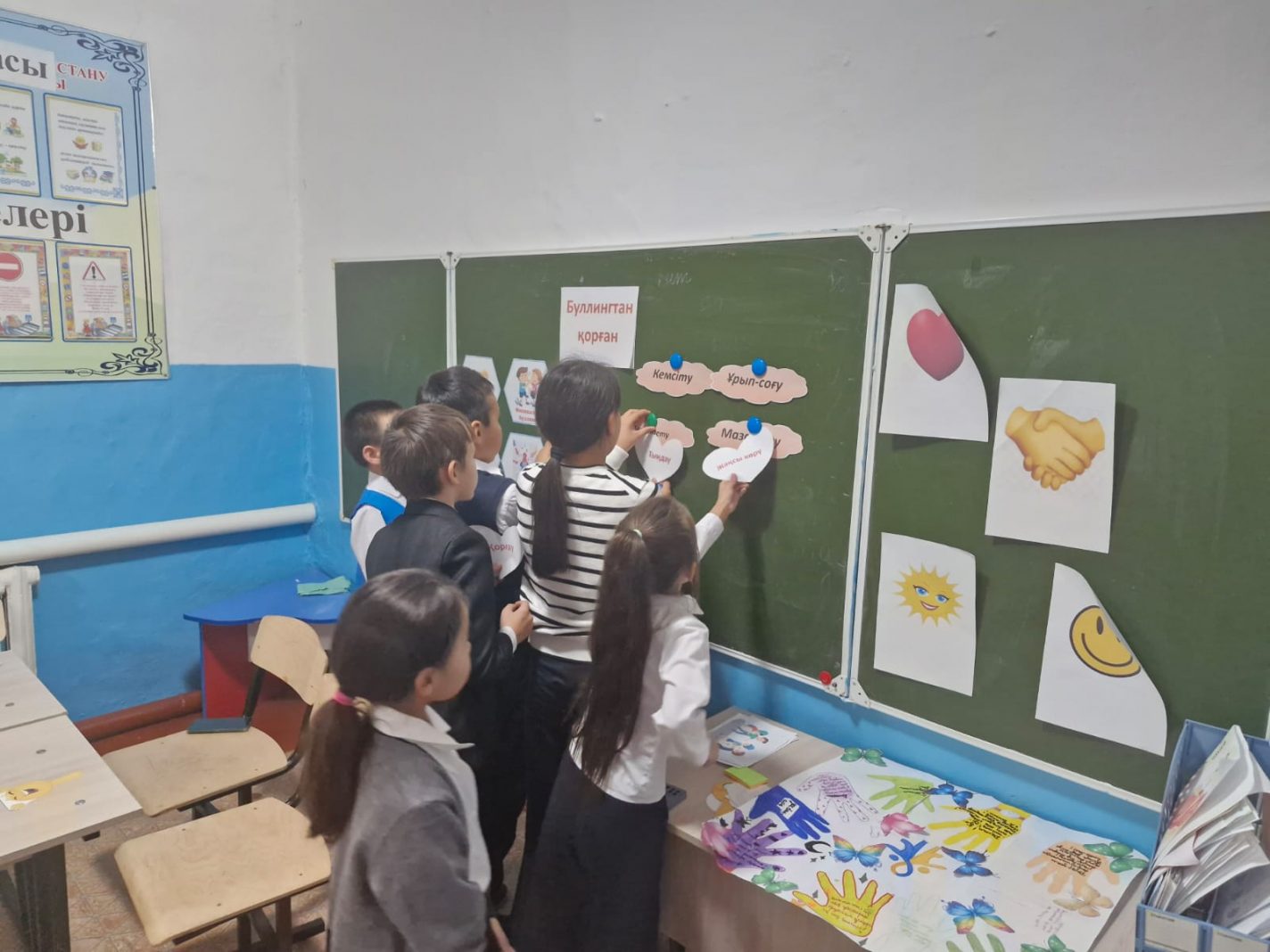Қауіпсіз мінез-құлық дағдыларын дамыту. Басқаны ренжітпей, құрдастар арасындағы мейірім мен достықты дамыту мақсатында мектеп психологы 1-9 сынып оқушылар арасында "Буллингтен қорған. Біз біргеміз -буллингке жол жоқ! " тақырыбында тренинг өткізді.